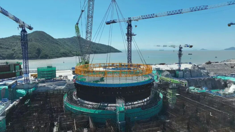 金七門核電1號機組鋼結構安全殼鋼襯里模塊經過4個多小時的緊張作業(yè)平穩(wěn)落位,巨力索具環(huán)形吊具為此次吊裝提供了關鍵保障。